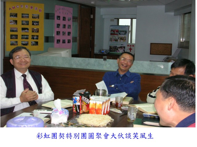 l4/2下午在傳道會辦公室特別辦了一次團圓聚會,許多政戰彩虹團契的弟兄在會中都彼此分享軍中服役期間如何經歷神的恩典。