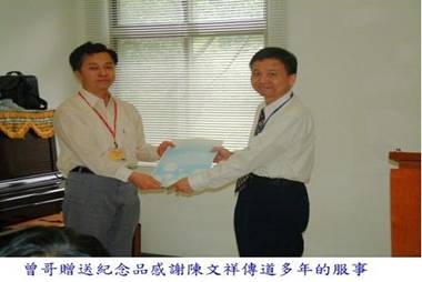 的維琴弟兄祝福禱告,曾哥特別感謝陳文祥傳道在多年來為加利利